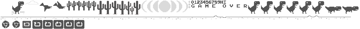 Dino game. Un dinosauro pixelato schiva cactus e pterodattili mentre corre attraverso un paesaggio desolato. Quando senti un segnale audio, premi spazio per saltare gli ostacoli.