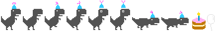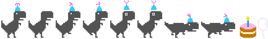 Qui, il T-Rex pixelato può afferrare una torta di compleanno, indossare un cappello da festa e correre sullo sfondo di colorati palloncini. Inoltre, il gioco è "hackerabile", permettendoti di modificare l'ambiente, la velocità e altro ancora per un ulteriore strato di divertimento.